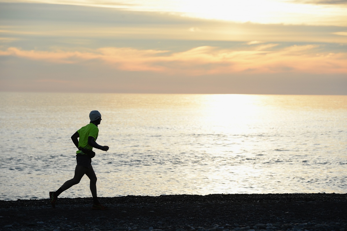 A paved trail runs along the water front for runners and cyclists, and there are grassy knolls and cafes lining the beach to relax after a run.