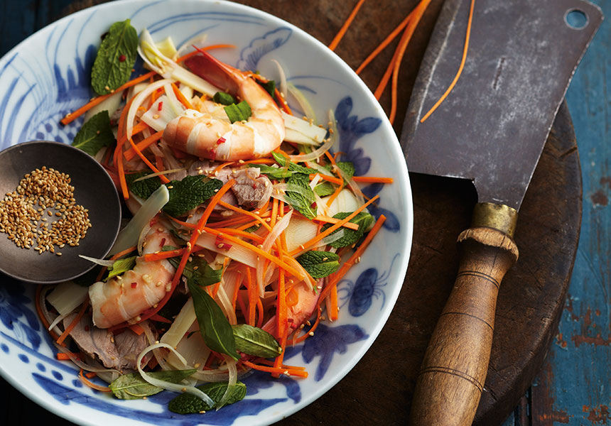 Nuoc cham is a popular Vietnamese dipping sauce. To make your own, combine 1½ tablespoons fish sauce, 1½ tablespoons white vinegar, 1 tablespoon sugar and 60ml water in a saucepan over medium heat. Stir well and cook until just before boiling point is reached, then allow to cool. Stir in 1 finely chopped garlic clove, ½ finely chopped bird’s eye chilli and 1 tablespoon lime juice and serve.