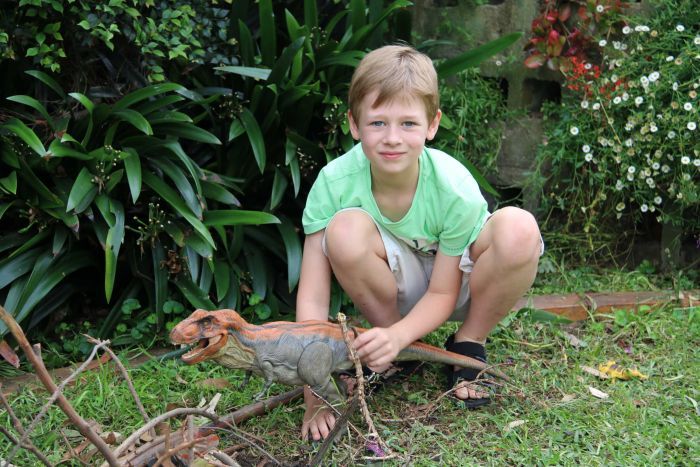 Now the vibrant seven-year-old is happy to discuss his love for dinosaurs, monster movies and his sister, Lauren.