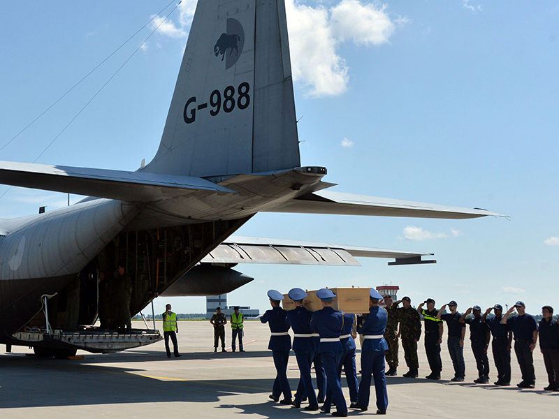 The two military planes will shuttle 200 bodies between Ukraine and the Netherlands until all bodies are in Holland for identification.