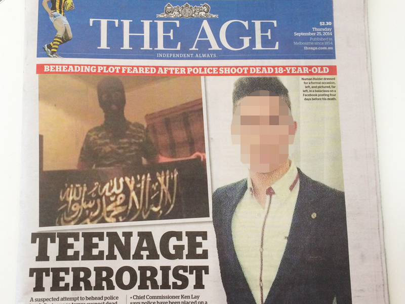 The papers ran Mr Alam’s photo with headlines including “Teenage Terrorist”, “Teen Jihad” and “Teen Takes Terror to the Suburbs”, dubbing him a “schoolboy turned fanatic” who “set terror trap for police”.