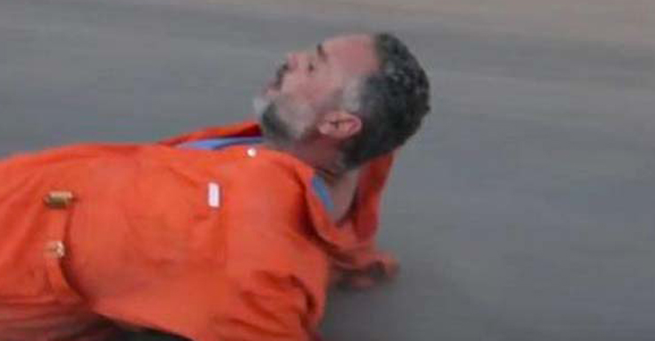 Mr Al-Masouri is dressed in an orange jumpsuit, a familiar element in IS’s series of graphic execution videos.
