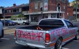 The image was posted on the online forum Reddit on Monday, and shows a silver Ford ute with Tasmanian number plates scrawled with the words “cheater” and “I love crack whores” in red paint.