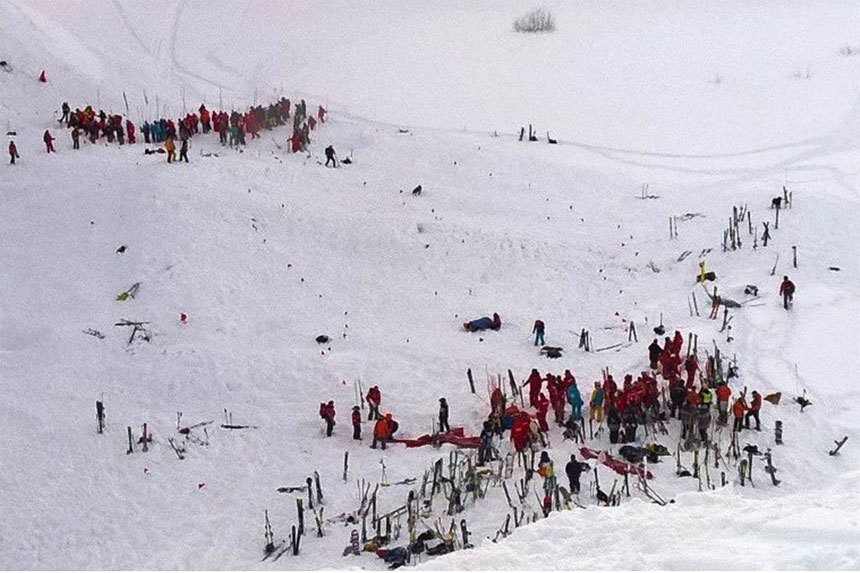The avalanche happened in late afternoon, after a large sheet of snow broke off above the slope following several days of heavy snowfall.