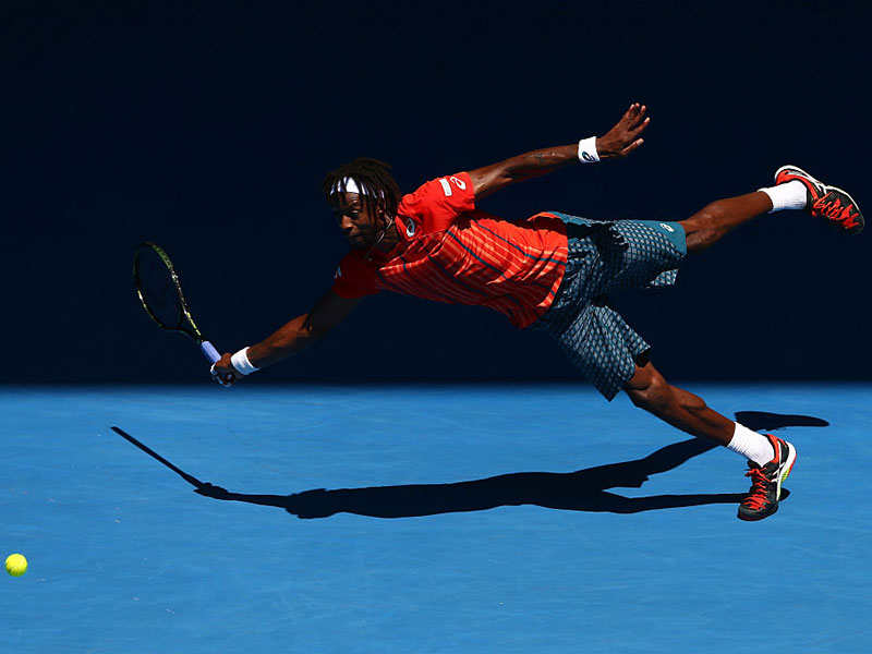 Flamboyant Frenchman Gael Monfils lit up the Australian Open as Milos Raonic turned heads in his own way en route to the last eight at Melbourne Park on Monday.