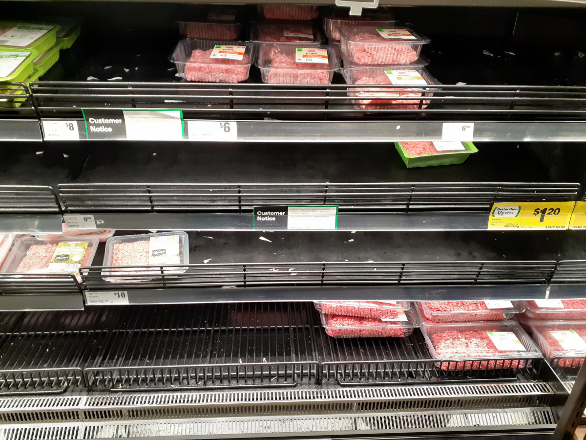 The situation is so bad that Coles introduced a two-pack purchase limit on mince, chicken breasts, chicken thighs and sausages over the weekend, while Woolworths said supply of some foods continues to be “patchy”.