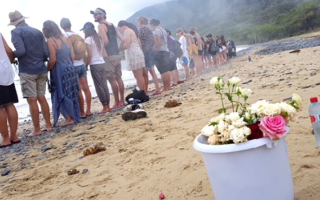 More than 200 residents bearing flowers gathered to form a human chain across a far north Queensland beach this morning to remember...