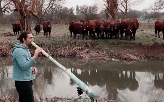 A herd of English cows has been moved by the singular sound of the Australian instrument.