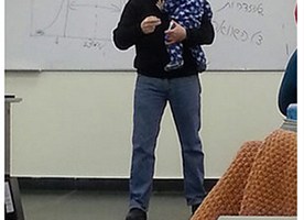 There’s a photo of a university professor holding a baby while teaching a class that has gone viral – for all the right...