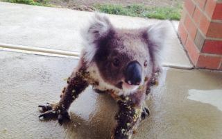 Koala covered in prickles welcomes a brush and tickle from helpful neighbour