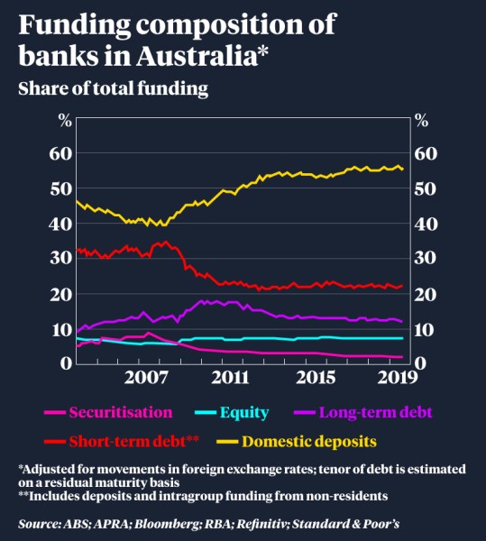That’s a desirable thing, as we discovered during the GFC when foreign borrowings made up a bigger percentage of funding and threatened to be flighty.