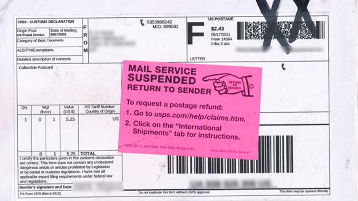 Americans have reported receiving their packages back in the mail, plastered with a ‘mail service suspended’ sticker and instructions to claim a refund.