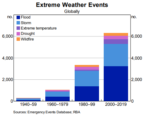 Dr Lowe fingered climate change as one of four factors that are playing merry hell (I’m translating from RBA-speak) with the supply side of the economy.