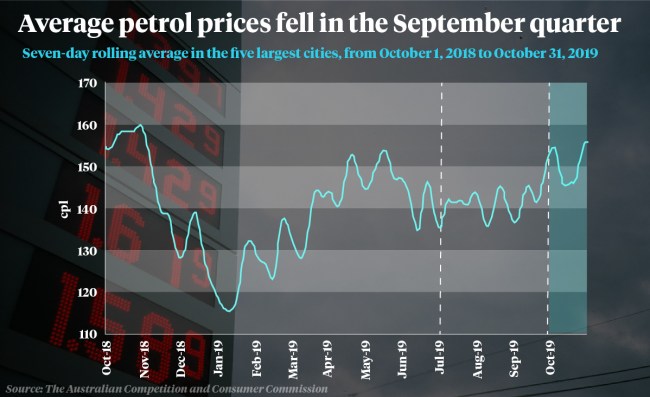 The Australian Competition and Consumer Commission (ACCC) said in its latest quarterly petrol report that average petrol prices across Australia’s five largest cities dropped 3.2 cents per litre in the September quarter, to 142.1 cents.
