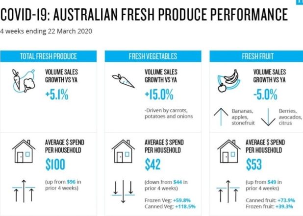 Spending on fresh produce reached a two-year high in the month ending March 22, Nielsen analysis shows, up 5.1 per cent in volume year on-year.