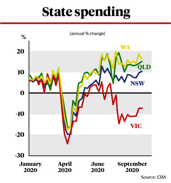 CBA senior economist Belinda Allen said the figures pointed to a gradual momentum in the country’s larger states, driven by optimism around lower case numbers and economic reopening.