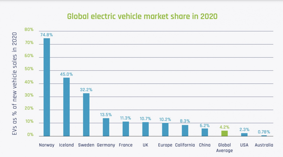 Australia is being left behind as it clings to fossil fuels while the rest of the world moves on to electric and hybrid cars.