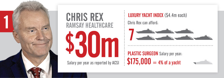 Taking into account these additional elements, the highest-paid Australian chief executive in 2014 was Ramsay Health Care’s Chris Rex, who ACSI said earned a staggering $30.8 million.