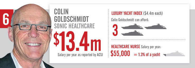 James Hardie’s CEO earned almost twice as much as reported – $20.8 million – while Colin Goldschmidt of Sonic Healthcare earned $13.4 million, not the $3.8 million reported.