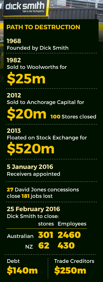 Dick Smith was put into receivership on January 5 when its bankers, owed $140 million, feared they wouldn’t be repaid if it continued trading.