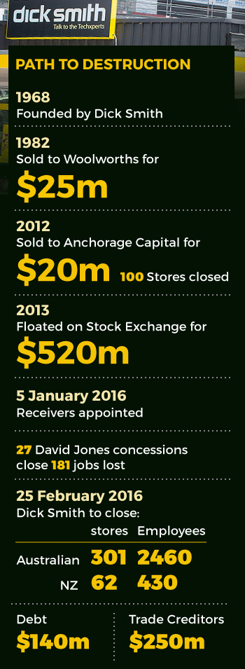 Just three years ago Dick Smith, the retailer that has been an electronics byword for two generations of Australians, was worth $520 million.