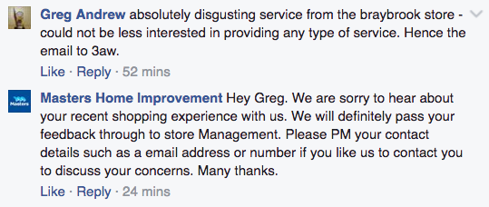 “We understand your frustration at times as we are customers on our days off to [sic], but it is not necessary to be an arrogant pig to the people who serve you at your local hardware store,” said another individual, claiming to be a Masters employee.