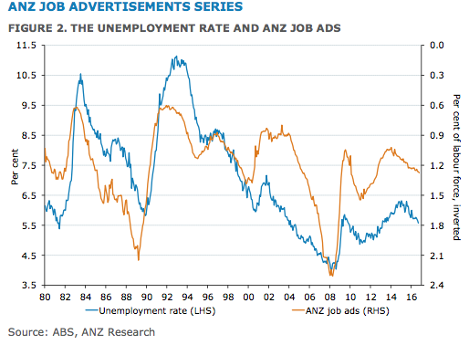Growth in the ANZ job ad series has been a leading indicator of unemployment rates traditionally.