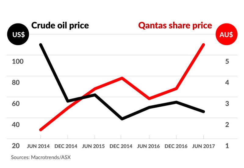 However, Mr Joyce’s reputation as a business visionary is called into question when you look at the correlation between the boom in Qantas’ fortunes and the plummeting price of crude oil.