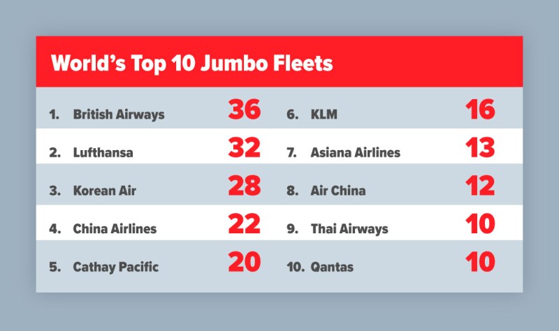 British Airways possesses the world’s largest fleet of 747s, with 36 jumbos. But you won’t be able to catch one of them back to Australia. They only fly to Beijing, Boston, Cape Town, Dubai, Lagos, Las Vegas, Mexico City, Miami, New York, Phoenix, San Francisco and Toronto.