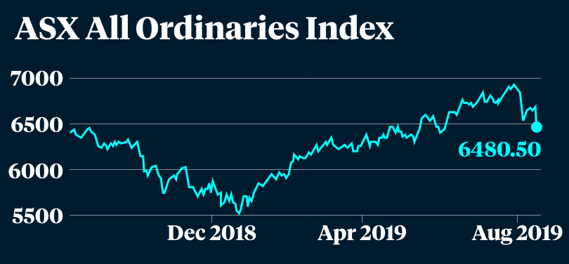 The All Ordinaries Index is down 6.7 per cent from its July 30 high of 6920 points but it is still 12 per cent up on six months ago, about even with a year ago and 24.5 per cent up on the February 2016 low.