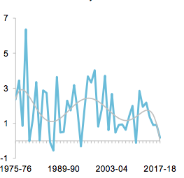 [The GDP per capita figure is bigger for 2018-19 than the current level of GDP growth because last year was a better one for the Australian economy than 2019 has been]
