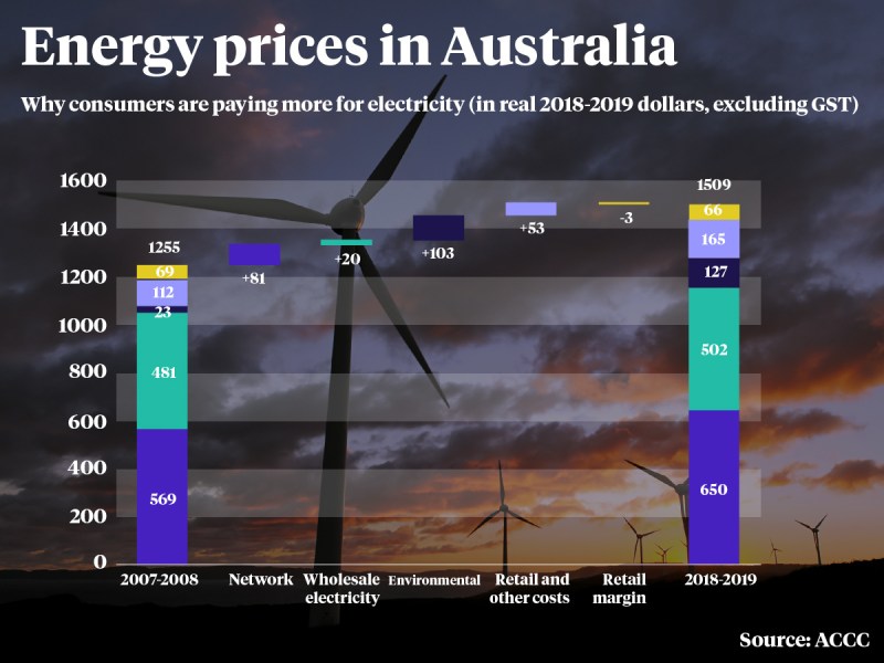 The ACCC’s report found the largest contributors to energy price increases in the past decade were added costs stemming from environmental policies, which drove the average annual bill up by $103.