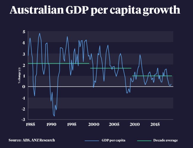 “We can see the impact of this in the fact that growth in GDP per capita has slowed materially since 2010,” Dr Plank said.