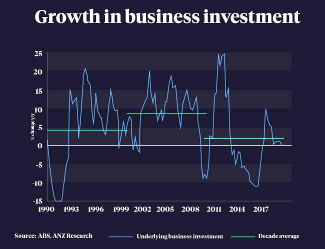 ANZ head of Australian economics David Plank said the government should consequently introduce policies that encourage businesses to up their spending – echoing calls made by business lobby groups.