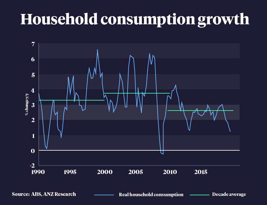 This means the recent low level of household consumption could be the new normal, which makes a pick up in business investment and wages unlikely.