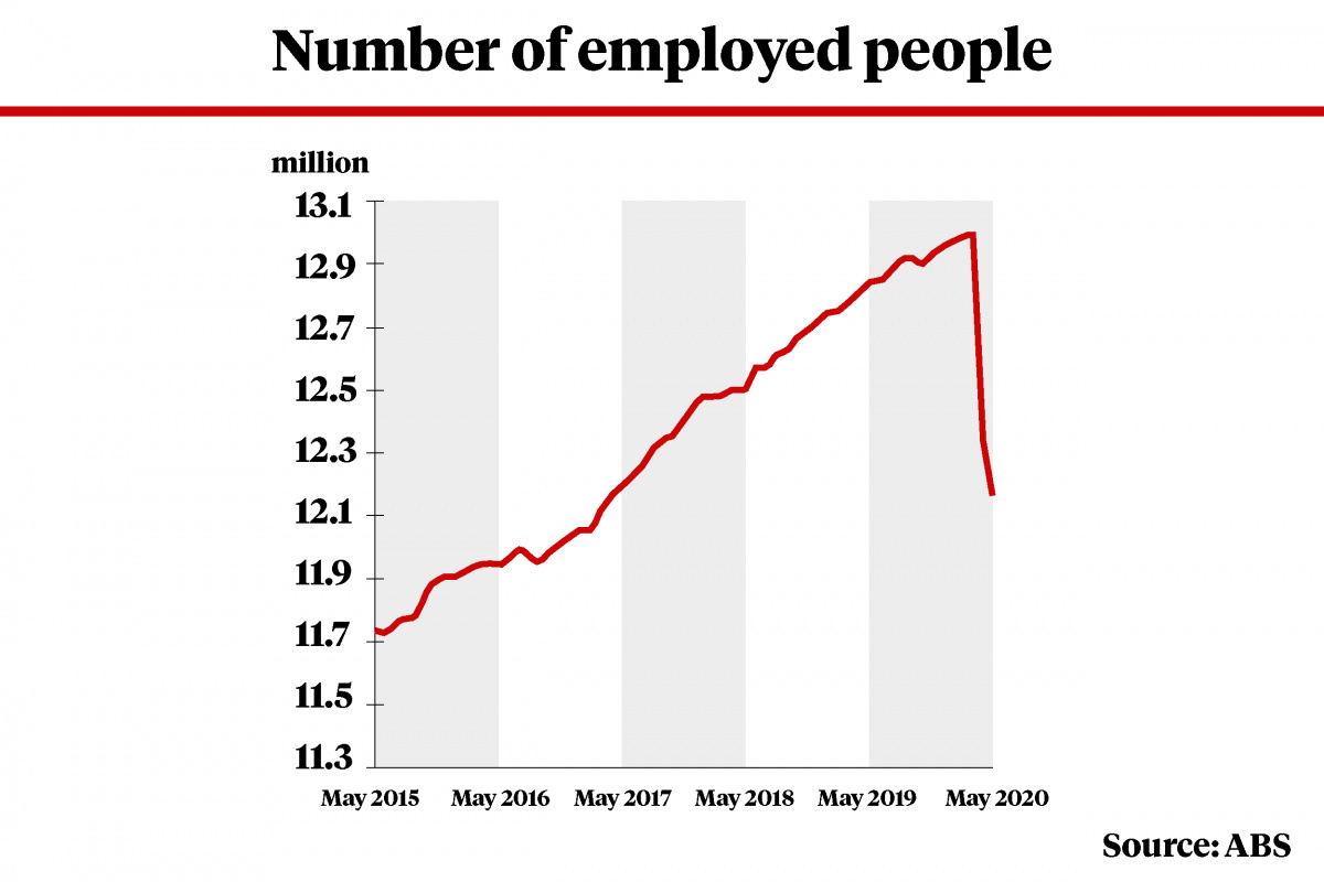 This is because the ABS only defines people as unemployed if they are available and actively looking for work – meaning 623,600 people who have lost jobs since March are classified as having ‘left the labour force’, rather than as newly unemployed.