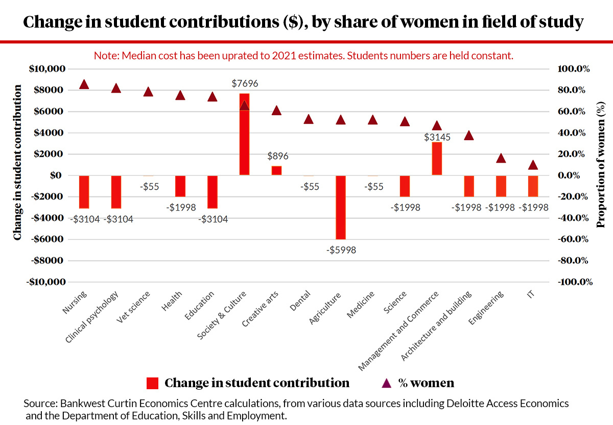 If current education patterns and costs remain stable until the changes are implemented, the modelling found young women would pay almost half a billion dollars more each year towards their education.