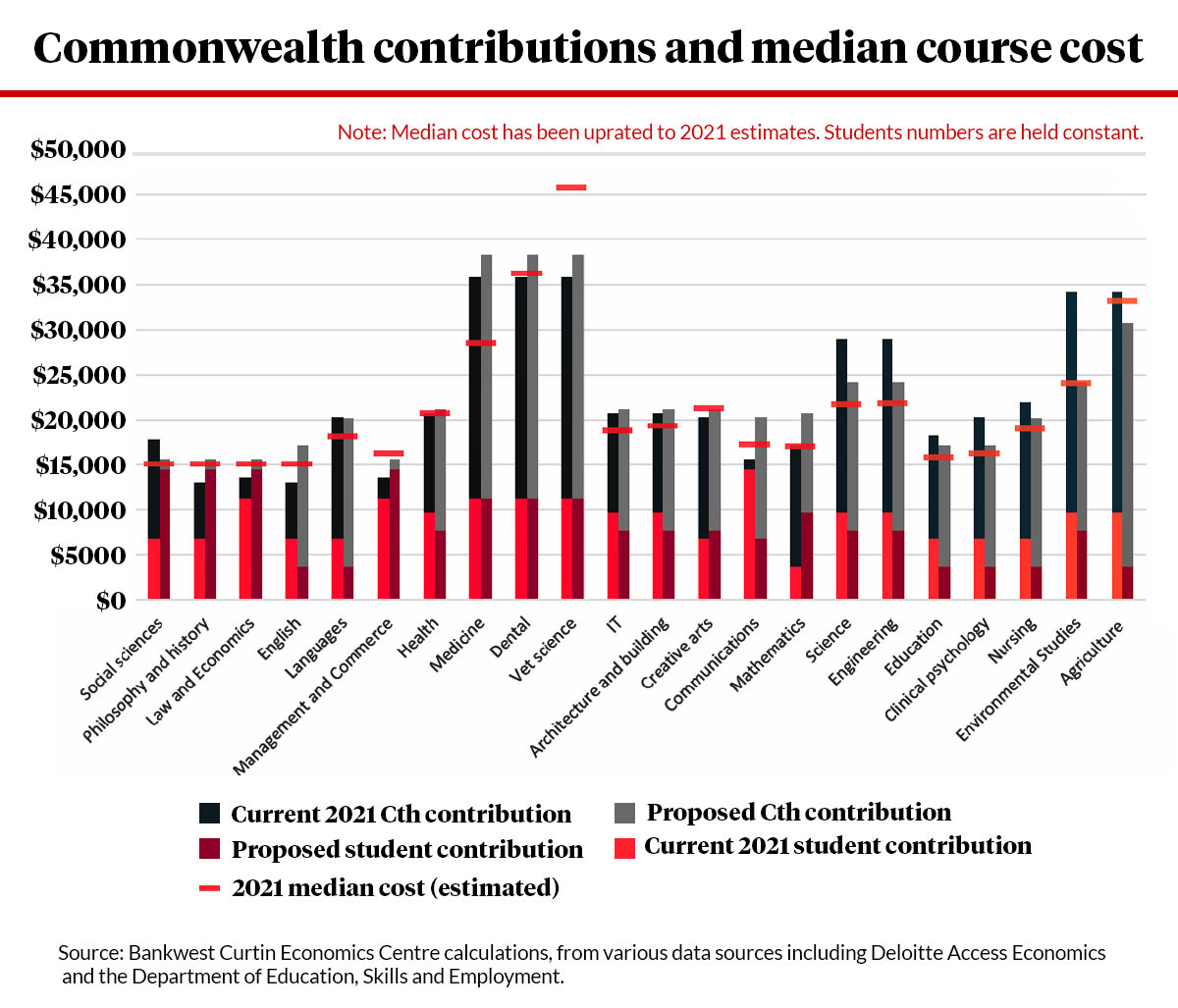“Most courses will have lower total funding overall relative to current median costs, with the exception of Medicine and Agriculture.”