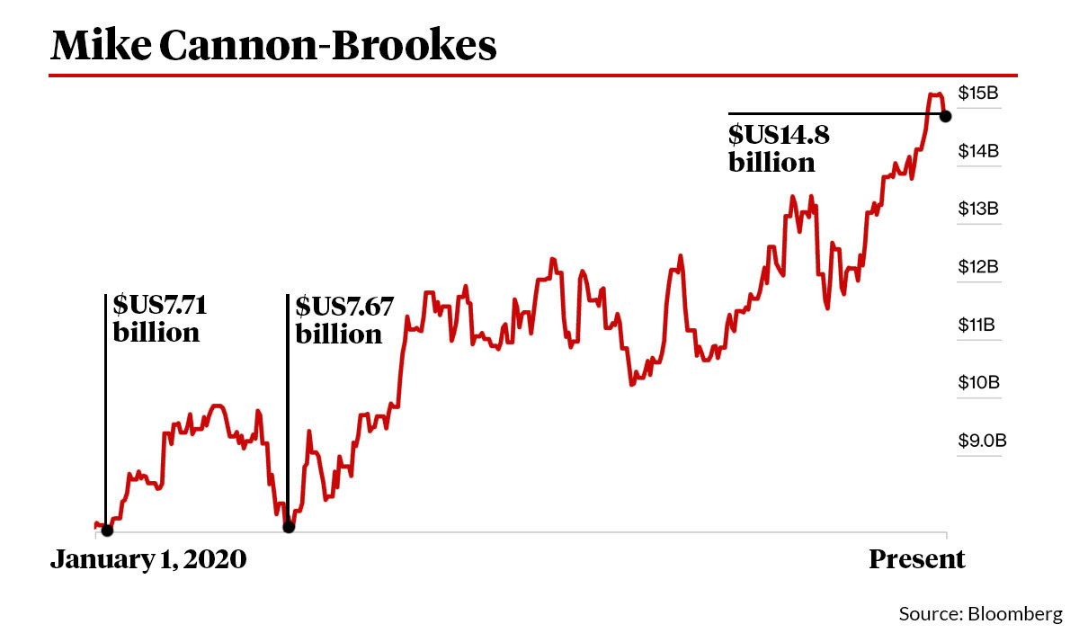 The co-chief executive officers and co-founders of tech company Atlassian saw their company’s share price ride a buoyant sharemarket wave through the second half of 2020.