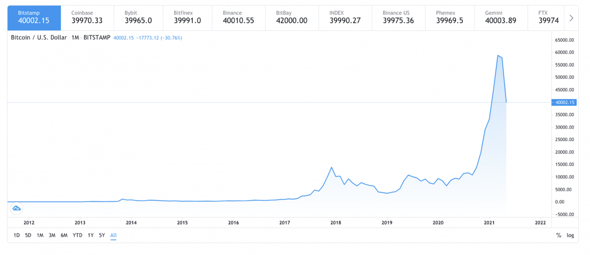 As discussed, in May 2010 the value of one Bitcoin was 0.3 cents. A year later it was worth a dollar – a 300-fold increase in 12 months.
