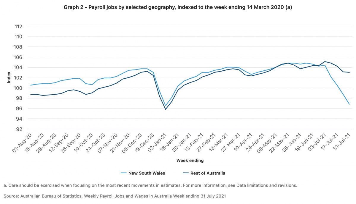 Commonwealth Bank, meanwhile, estimates 550,000 workers have so far been stood down as a result of lockdowns in NSW and Victoria.