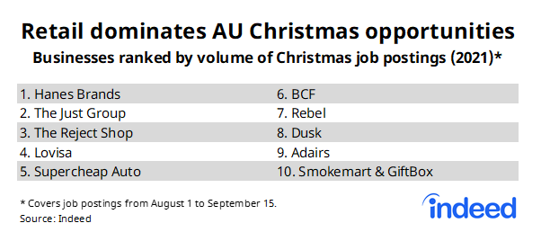 The Reject Shop is also hiring and so is jewellery retail chain Lovisa.