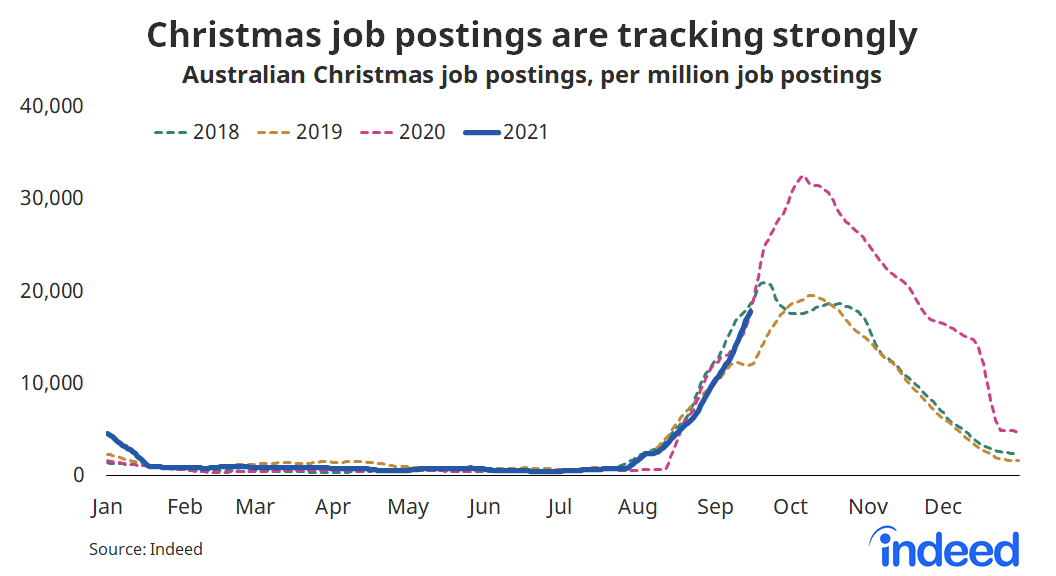 Indeed APAC economist Callam Pickering said the ads show lockdowns aren’t stopping retailers from preparing for a big holiday trading period.