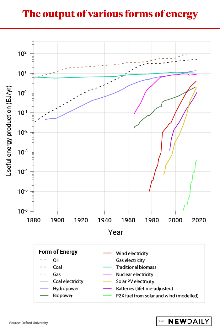 And it’s true that there is some very exciting technology going on that has rapidly brought down the cost of solar and wind power to below the cost of new coal.