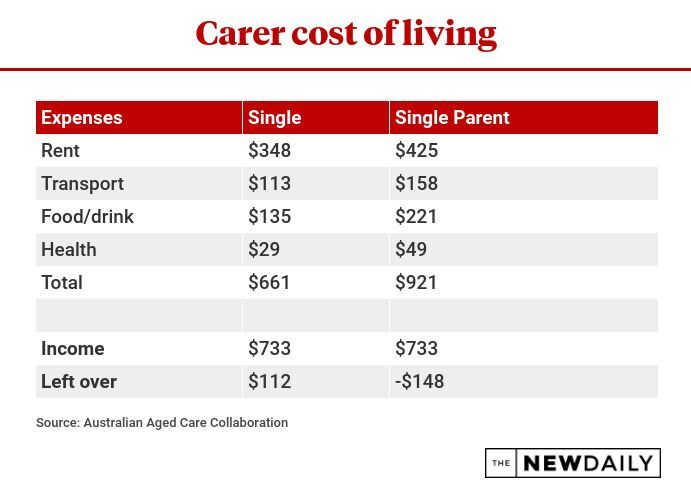 A single parent would finish up with a deficit of $148, while a carer who was part of a couple with children would end up with $17 in savings.