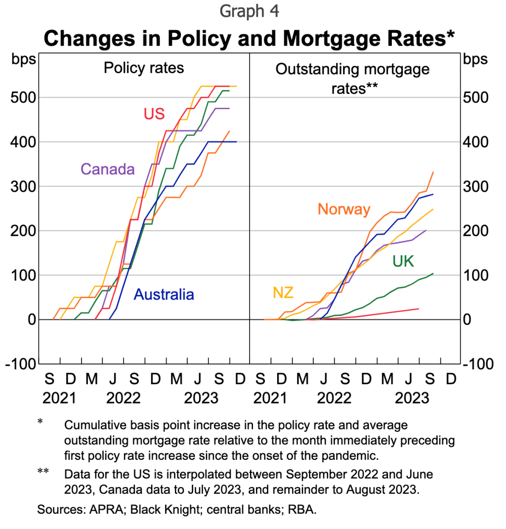 “Our estimates suggest that the 4 percentage point increase in the cash rate target since May 2022 will have reduced overall household spending by around 0.4–0.8 per cent per year,” Kent said.