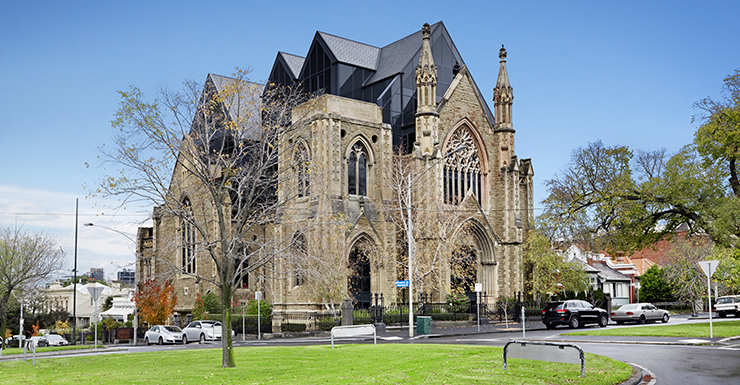 The north-facing ground floor apartment, which occupies part of what was once the Cairns Memorial (Uniting) Church in East Melbourne, is generously sized, offering four bedrooms, three bathrooms, multiple living zones and a wraparound terrace.