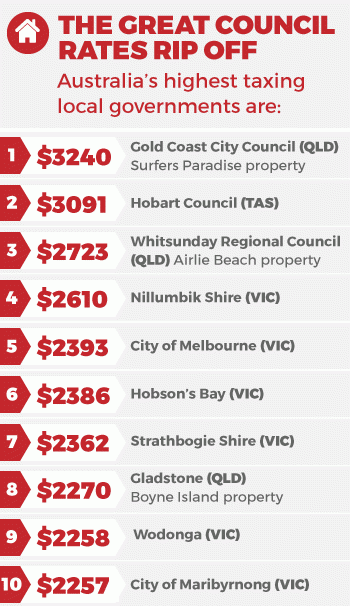 While Victorian homeowners generally cop the biggest annual hits to their budgets from greedy metropolitan and rural councils, ratepayers in other parts of Australia are also paying a heavy price for the financial mismanagement of local governments.