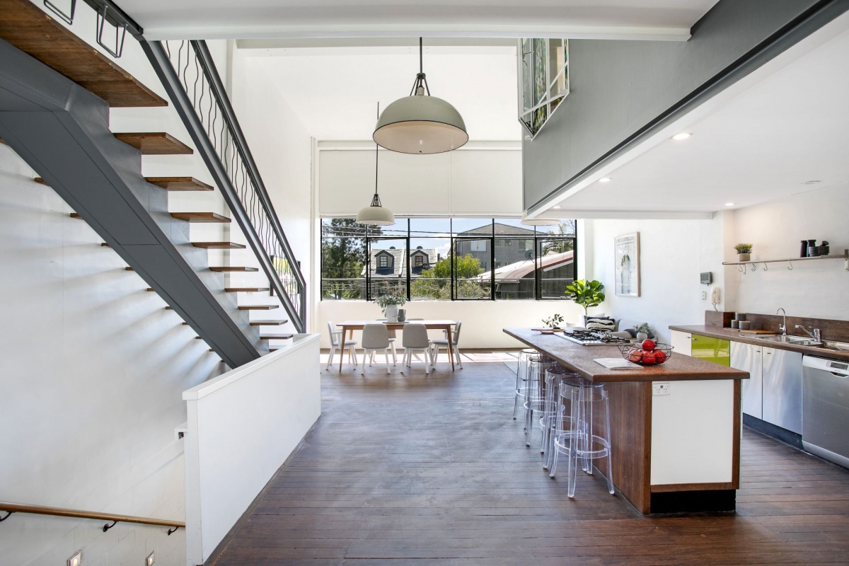 The Charles Street warehouse residence comes with a door from a Clovelly petrol station; railway ceiling lights from Carriageworks; teak doors from Bali and a steel staircase from a 1960s factory.
