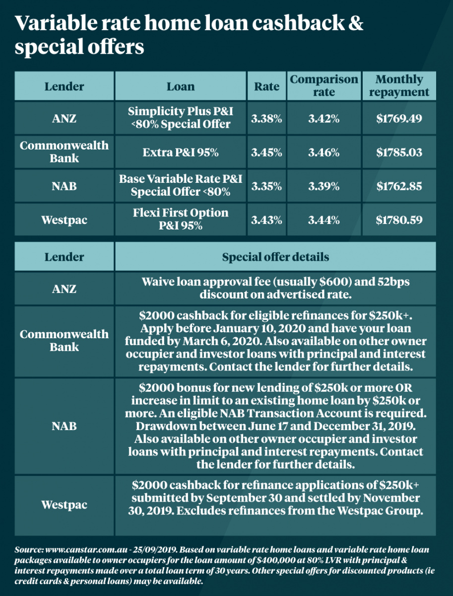 Bank of Melbourne, BankSA, Commonwealth, NAB, Suncorp, St George and Westpac are offering $2000 cash back to eligible customers.